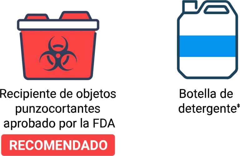 Desecha las agujas y jeringuillas utilizadas de forma correcta